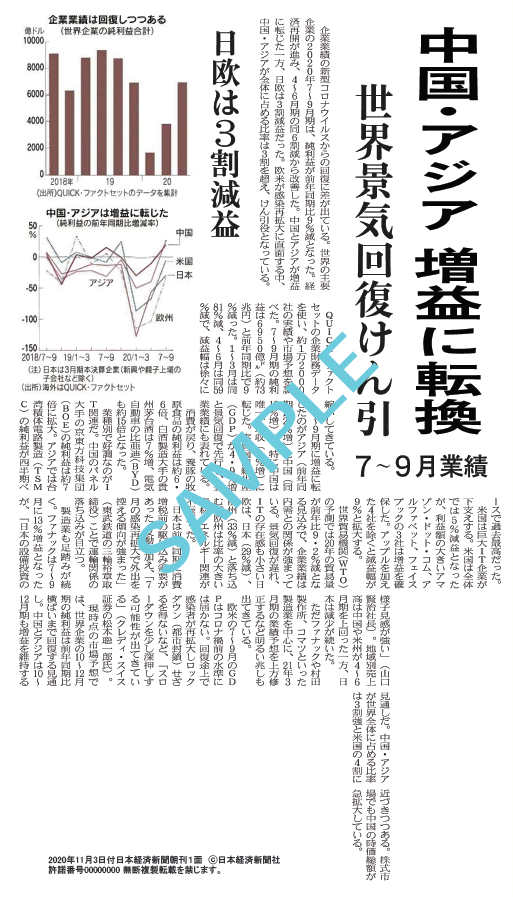 日経テレコン21収録の記事PDFに準拠した画質・レイアウトです。新聞題字は付かず、オプション加工サービスも対象外です。